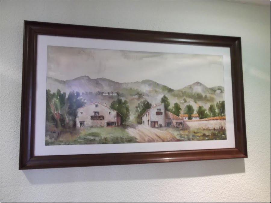 Es un paisaje en acuarela. A mi no es que me guste mucho, quizás por dicha anécdota, pero mi madre no quiere deshacerse de el, bueno, de casi nada.