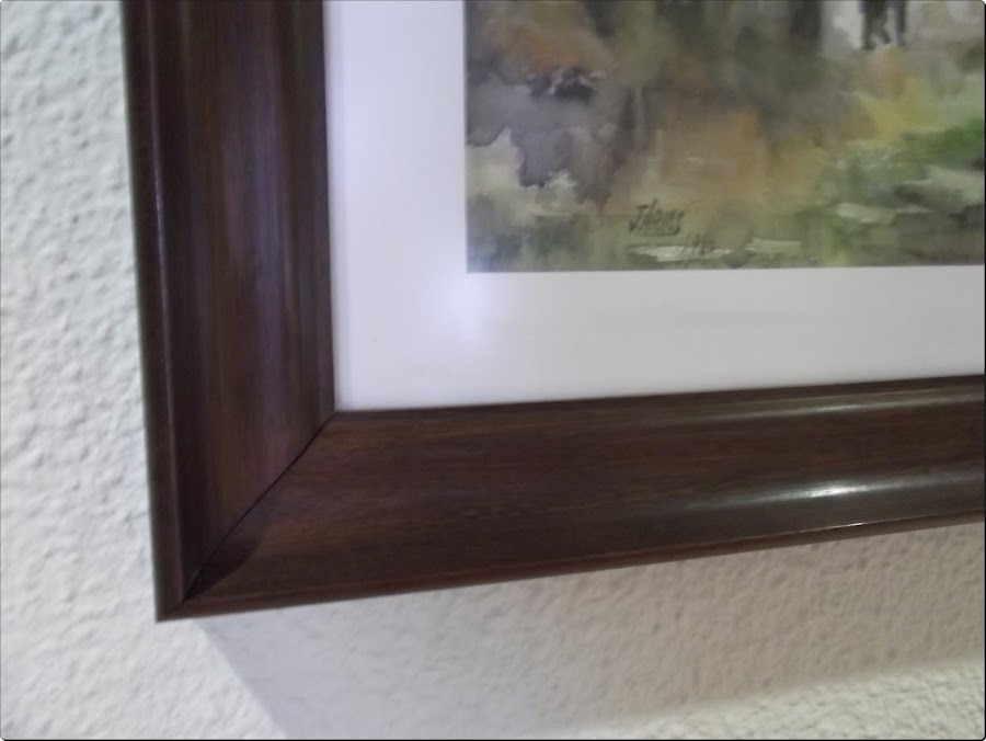 El marco, es muy oscuro y me dejado hacerle un cambio y así poder darle mas luz a la pared donde lo tiene colgado.