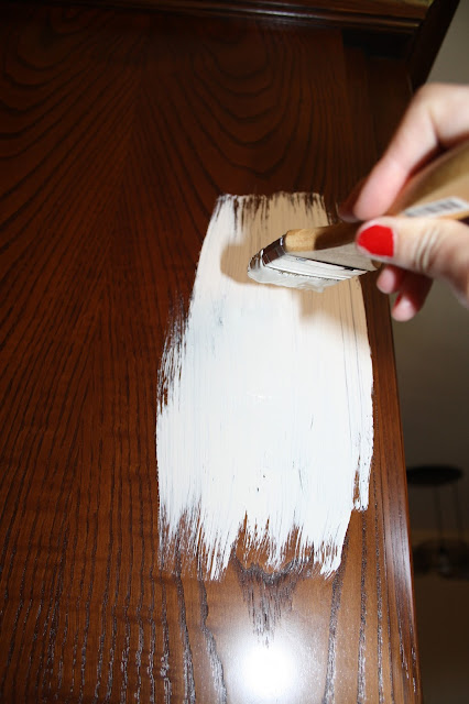 Mi idea era conseguir un mueble lo más parecido a lo que encontraríamos en casa de tu tatarabuela: un poco desconchado, con la pintura rugosa y con un acabado desigual. Así que opté por pinceles.