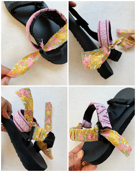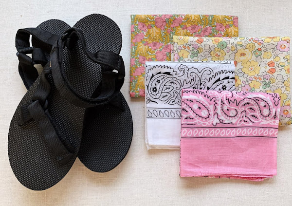 Aquí estoy de nuevo con un tutorial handmade para crear accesorios de verano. Unas cómodas sandalias con pañuelos de la cabeza.