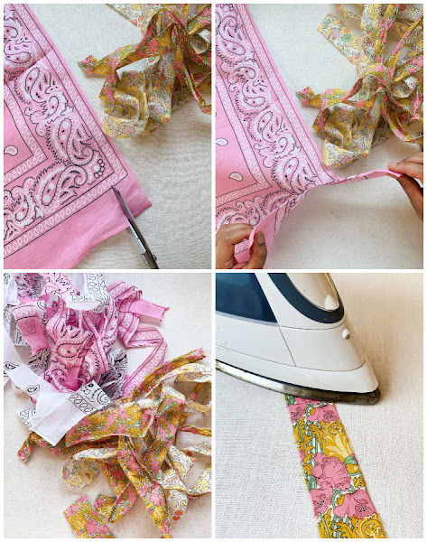 Los bordes se doblarán al rasgar la tela, por lo que habrá que planchar cada tira.