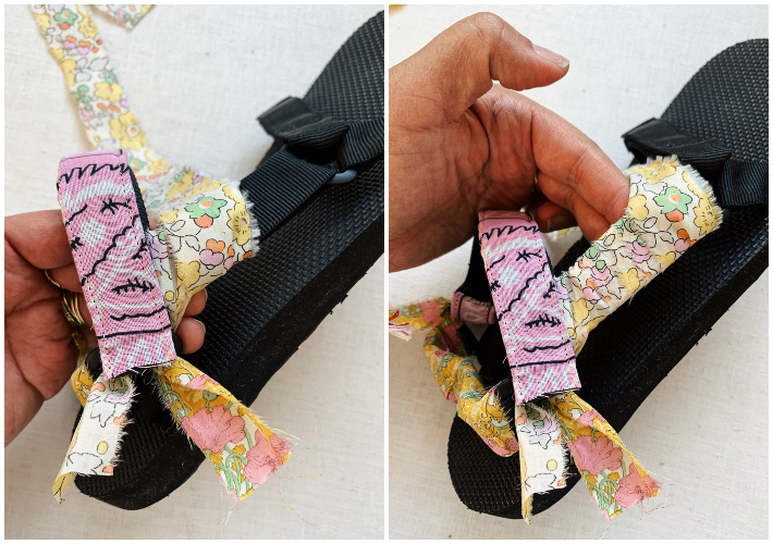 Sandalias decoradas con pañuelos de la cabeza
