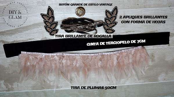 Y hago un cinturón de fiesta con mucho brillo y plumas. Con sólo eso vamos a conseguir estar fabulosas!!!!