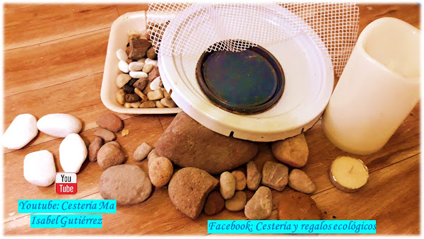 Con las tapas y piedras haremos bases porta-velas, puedes pintar la tapa del color a tu gusto...
