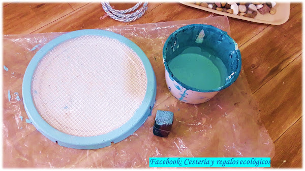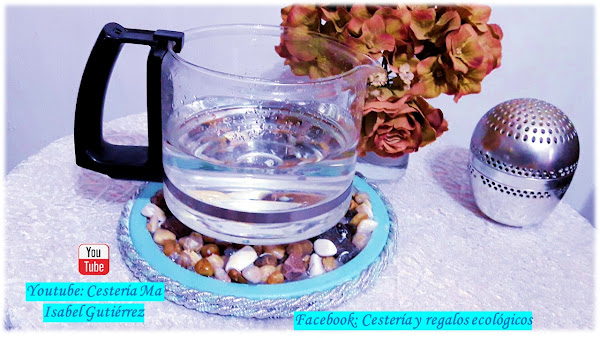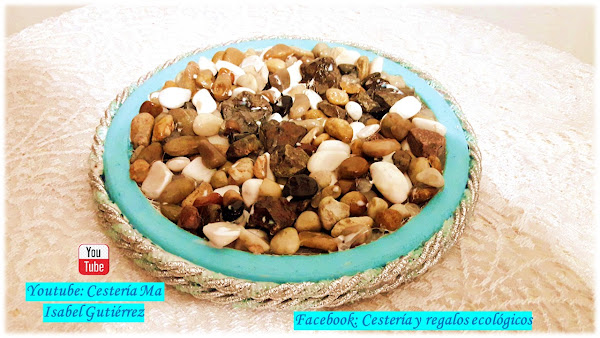 Otro uso para las tapas y piedras: una base de ollas con contenido caliente, mira que lindas lucen las piedras de distintos colores y tamaño, ni siquiera necesitamos pintarlas...