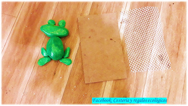 Para los cuadros de las ranitas podemos utilizar una pieza pequeña de madera, pero si no tienes, también lo podemos hacer con 3 piezas de cartón grueso...