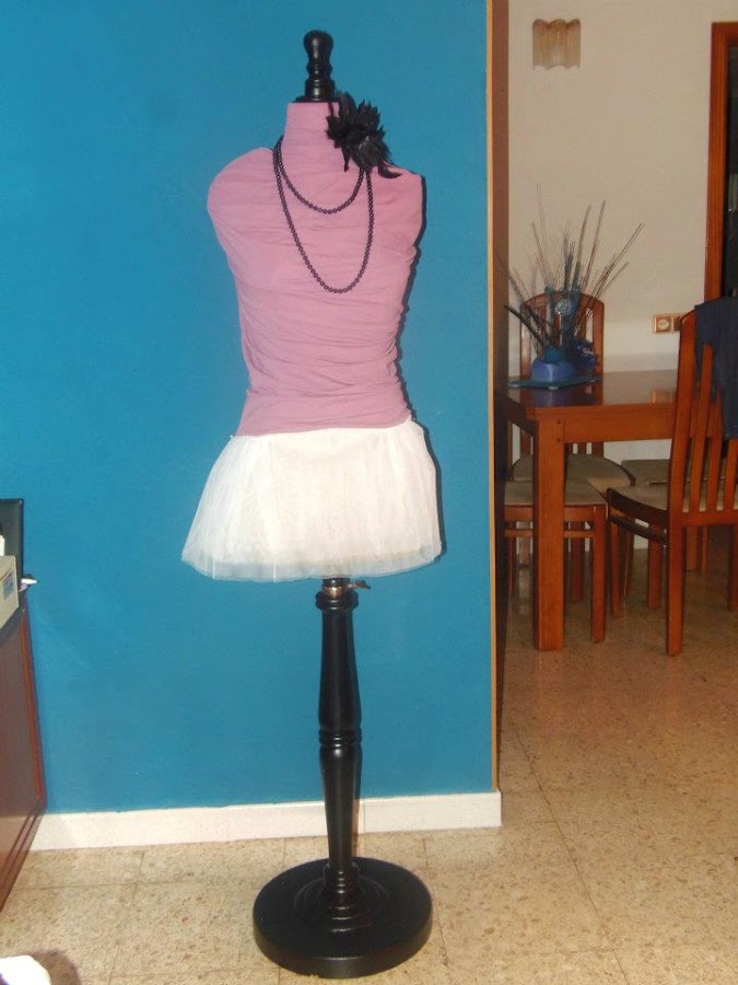 LE HE PINTADO EL PIE EN NEGRO QUIERO DECORARLO CON DECOUPAGE PERO DE MOMENTO ME DEDICO A VESTIRLO