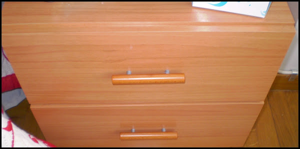 Puse unos cristales en las mesillas y la cajonera, para protegerla de los roces, dado que llevaran objetos encima,os imagináis,¿verdad? lampara, el odiado despertador, marcos de fotos, algún jarrón con flores, cajitas...