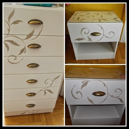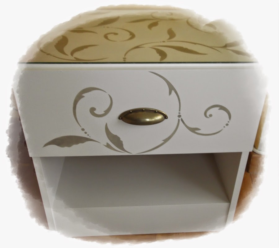 Elegí una plantilla e hice un estarcido en el sobre de ambas mesillas y en el cajón.