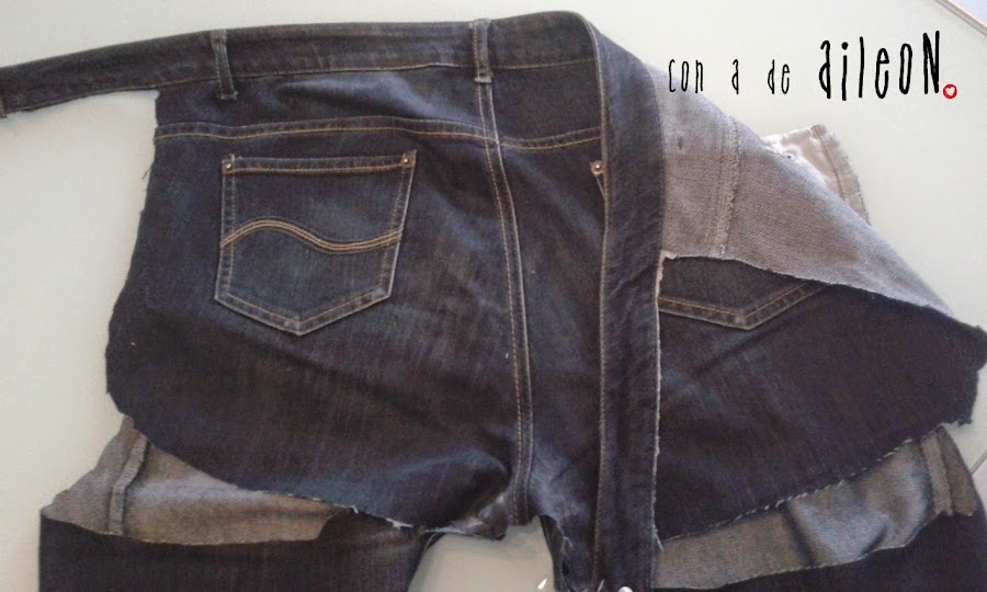 Pues sí, yo tenia un imposible que me venía bastante "prieto" así que me rozaba mucho entre los muslos y se me hizo la tipica raja desgastada casi en plena "entrepierna", así que no era plan de volverlo a llevar, a pesar de que hay muchos trucos para repararla, peeerooo... me daba lastimica mi pobre vaquero-compañero-de-batallas ya que estaba bastante nuevo.