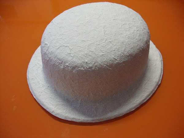 Erase un bombín de un bazar, los había de muchos colorines -menos blanco, claro está- por lo que compramos uno clarito que nos diera menos trabajo y le retiramos la cinta negra de adorno que traía alrededor.