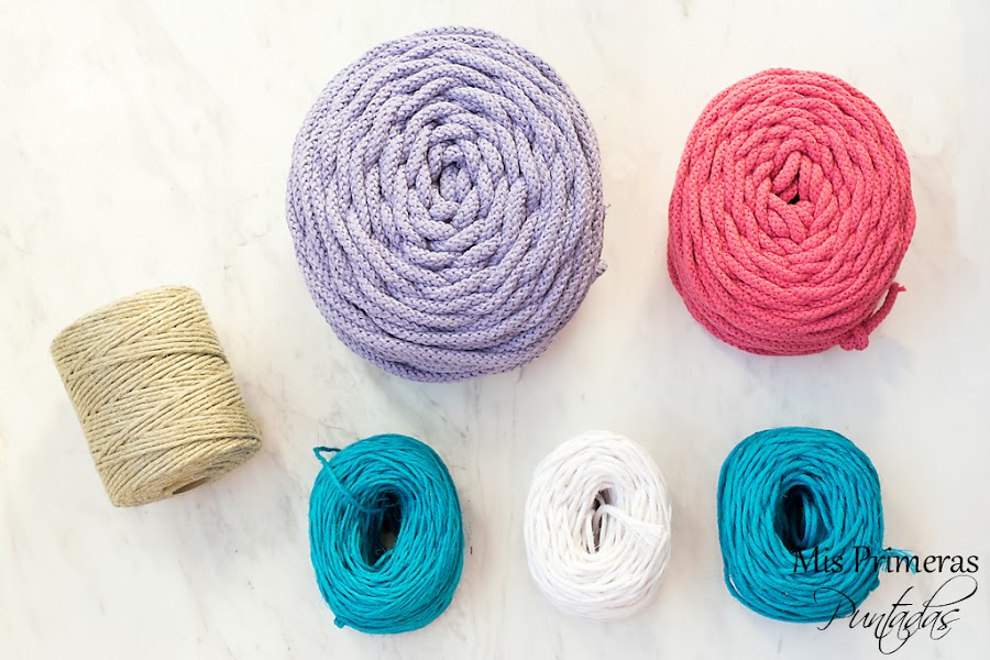 *Cotton air de doble trenza (lila), Cotton Air (fuscia) Lino de color (Blanco y azul) e Hilo de Lino especial de Guarnicionero.