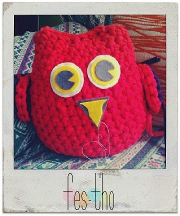 A la tarde siguiente, con el mismo trapillo del bolso monstruoso del día antes, tejí un búho sujeta puertas. Pues no llevaba tiempo queriendo algo así para la puerta de mi habitación que, no sé por qué, se cierra sola y a veces da mal rollete.