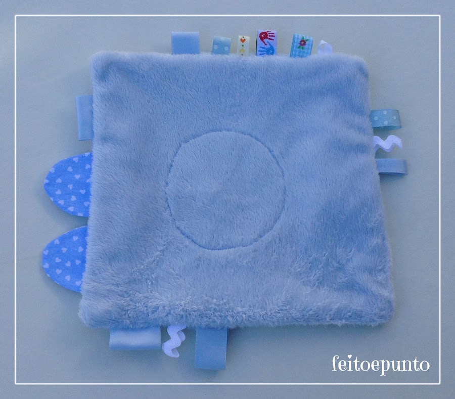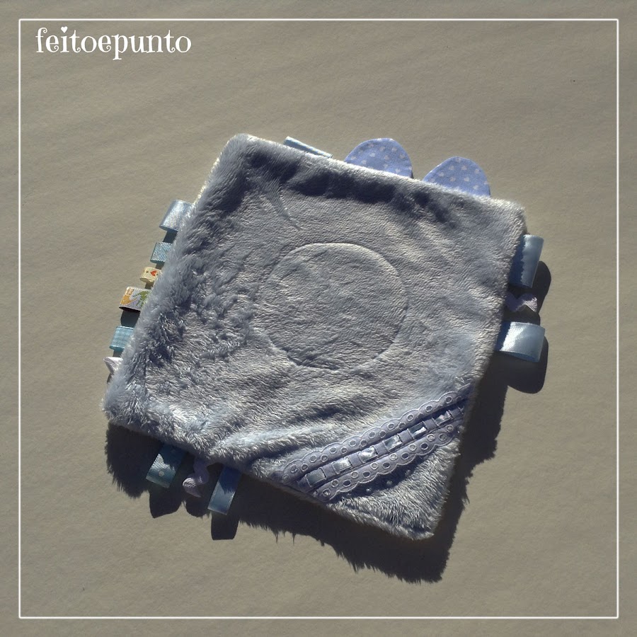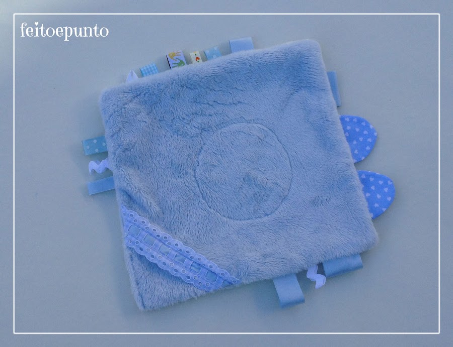 En mi propósito de ir usando telas almacenadas (algún día conseguiré vaciar los armarios) se me ocurrió hacer un trapito de apego para un bebé que nació hace poquito; y además de utilizar tela almacenada también rescaté restos de lazos y algún que otro adorno que llevaba tiempo esperando a ser usado.