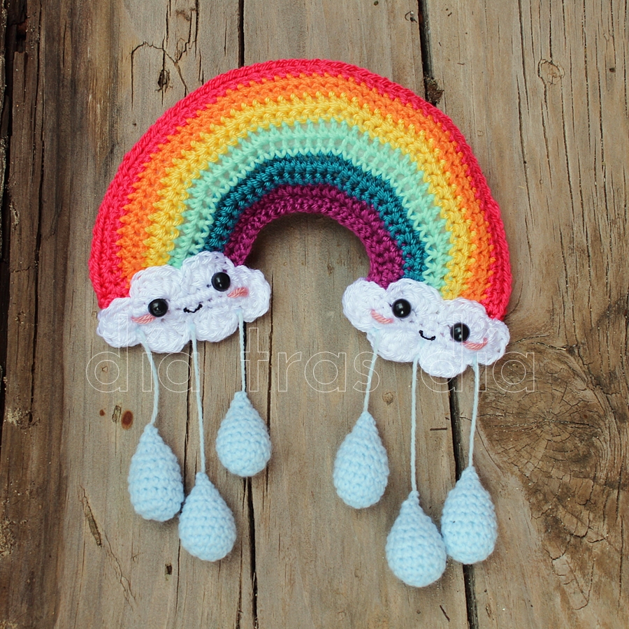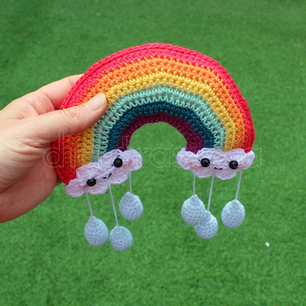 Pero aquí no quedó todo. Y es que, no quería quedarme con la nube lluviosa, que parece que resulta un poco tristona. Necesitaba complementarla con algo alegre. Así que, aprovechando que esta misma diseñadora tenía un arcoíris precioso, también en estilo kawaii, decidí tejer también este otro amigurumi.
