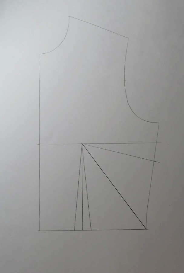 Vamos a partir de la base de que todas estas transformaciones pasan por el centro de pecho, y que la pinza de pecho debe ir dibujada hasta ese centro para poder aplanar el patrón.