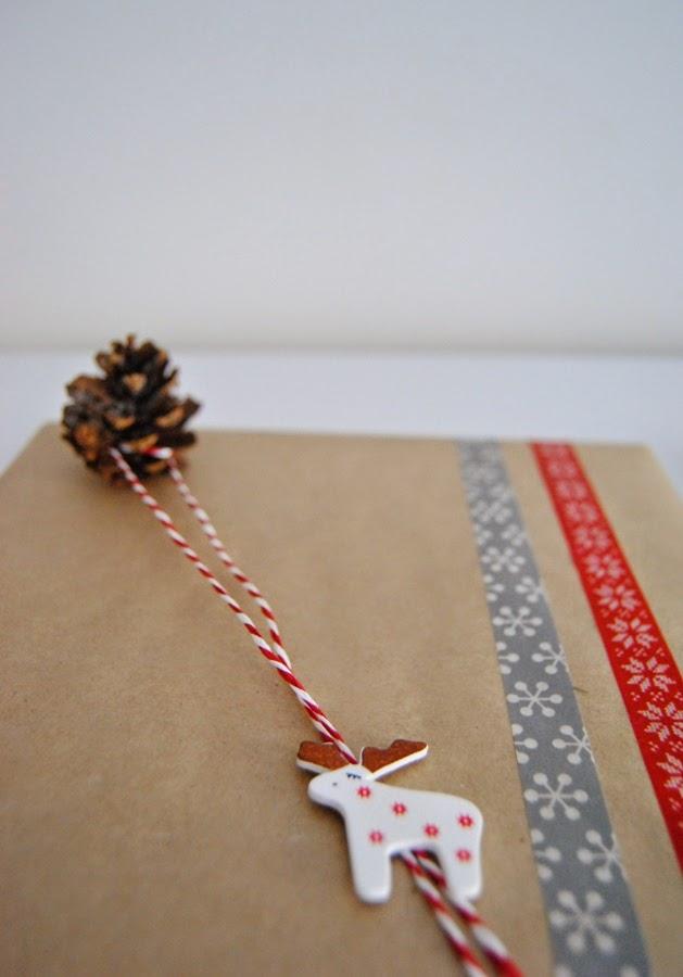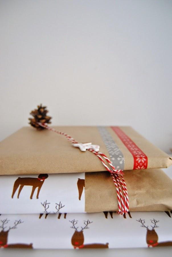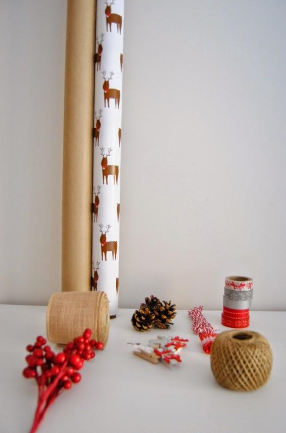 En nuestro caso utilicé papel craft, cordel natural, washi tape, cintas de tela, adornos navideños...