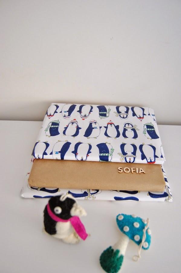 Para los cuentos de Sofía combiné el papel craft con el de renos y pingüinos.