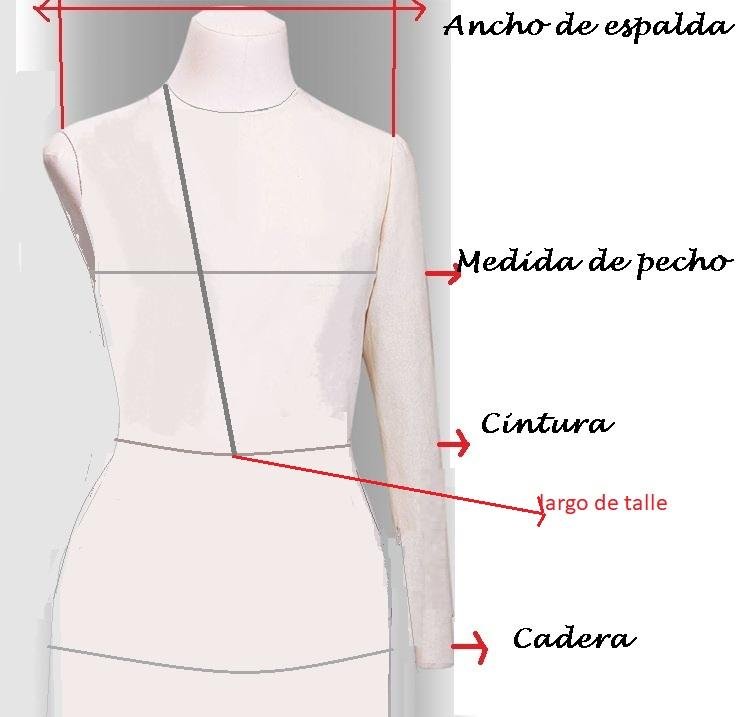 Empecemos con el corpiño. Todos los detalles del trazo los encuentra en este sitio . Vamos con las medidas, para este método se requieren muy pocas lo cual facilita el proceso y son las siguientes: Ancho de espalda, contorno de pecho, contorno de cintura y lago de talle,largo de manga
