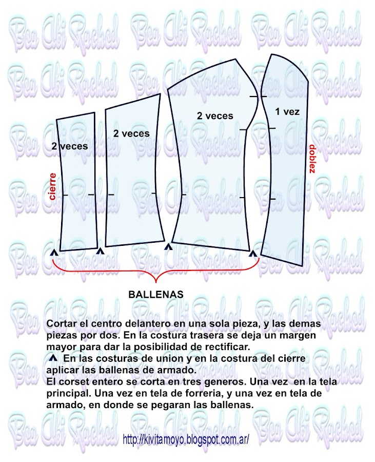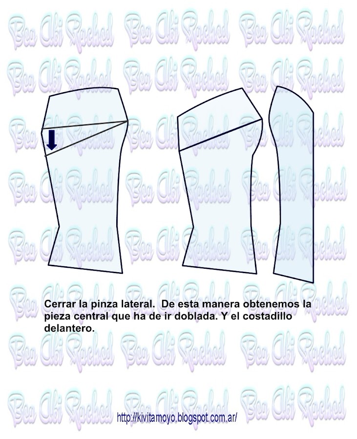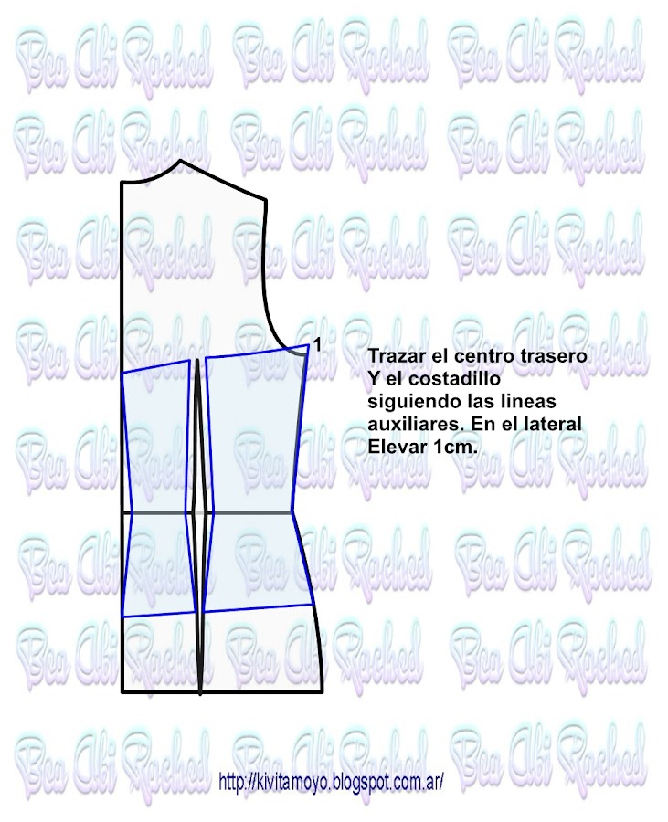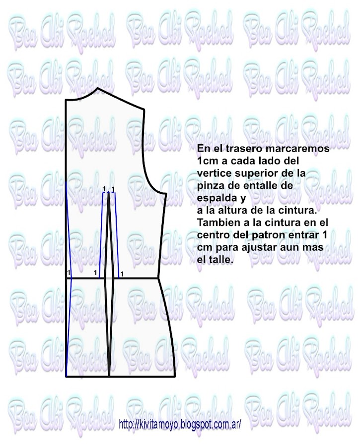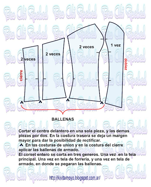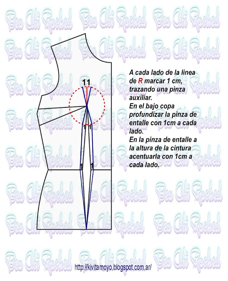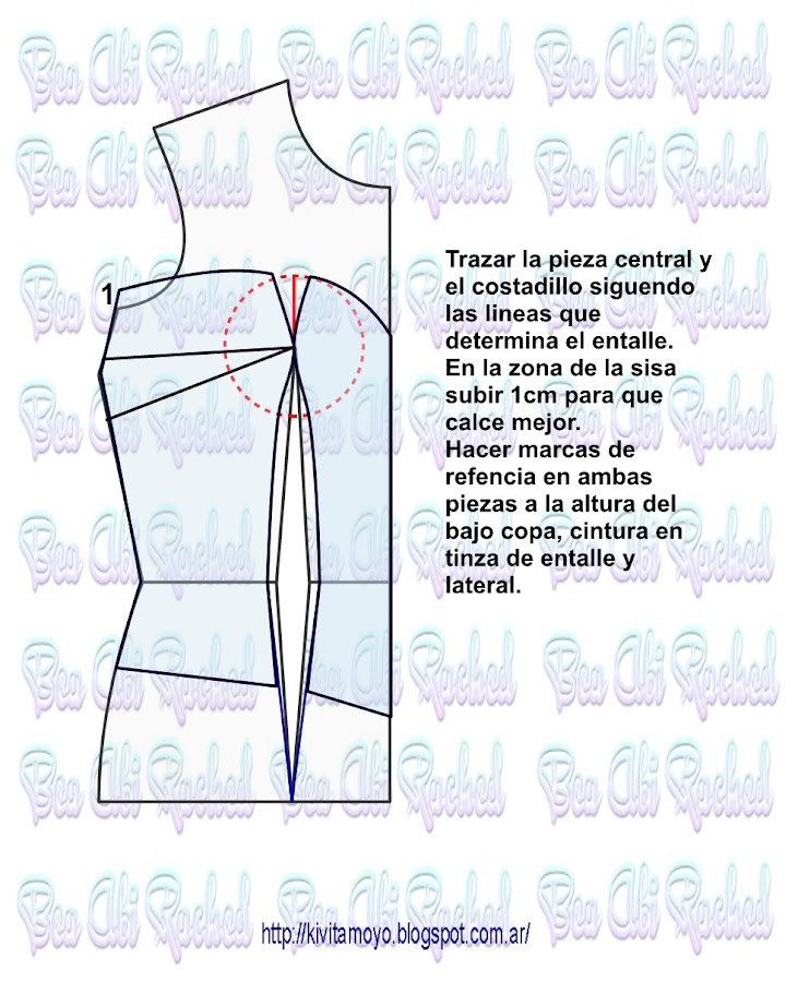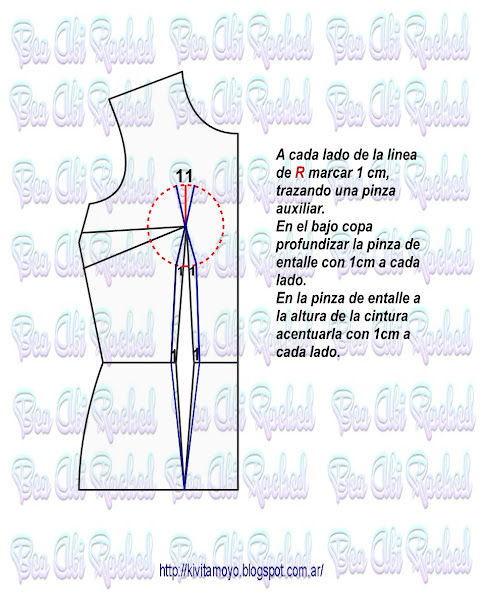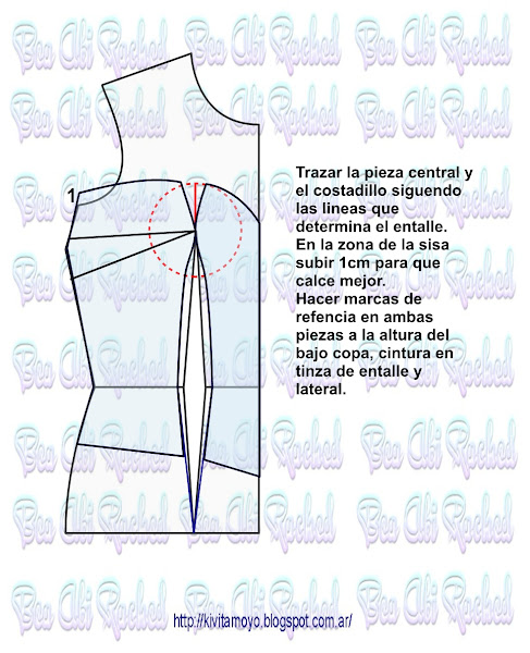 Trazar a partir del patron basico de vestido a medida. Ver link https://kivitamoyo.blogspot.com/2017/05/patron-basico-de-vestido.html Dibujar un corset basico con la referencia del radio de mama. ( Radio= se toma como el 10% del contorno de busto) . Continuar la pinza de entalle hacia el escote e incorporar 2 cm a una pinza auxiliar. Acentuar en el bajo busto 1 cm a cada lado en el futuro recorte ...