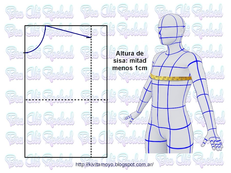 La altura de sisa se determina dividiendo entre dos la medida restante a partir de la caida de hombro, menos 1 cm.