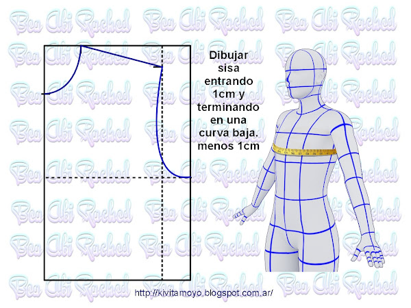 La sisa delantera sera mas cavada que la trasera. Verificar esta medida tomando el ancho de pecho.