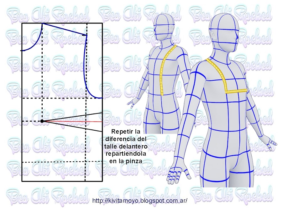 La diferencia entre el talle delantero con el trasero sera la medida que delimite el ancho de la pinza de busto