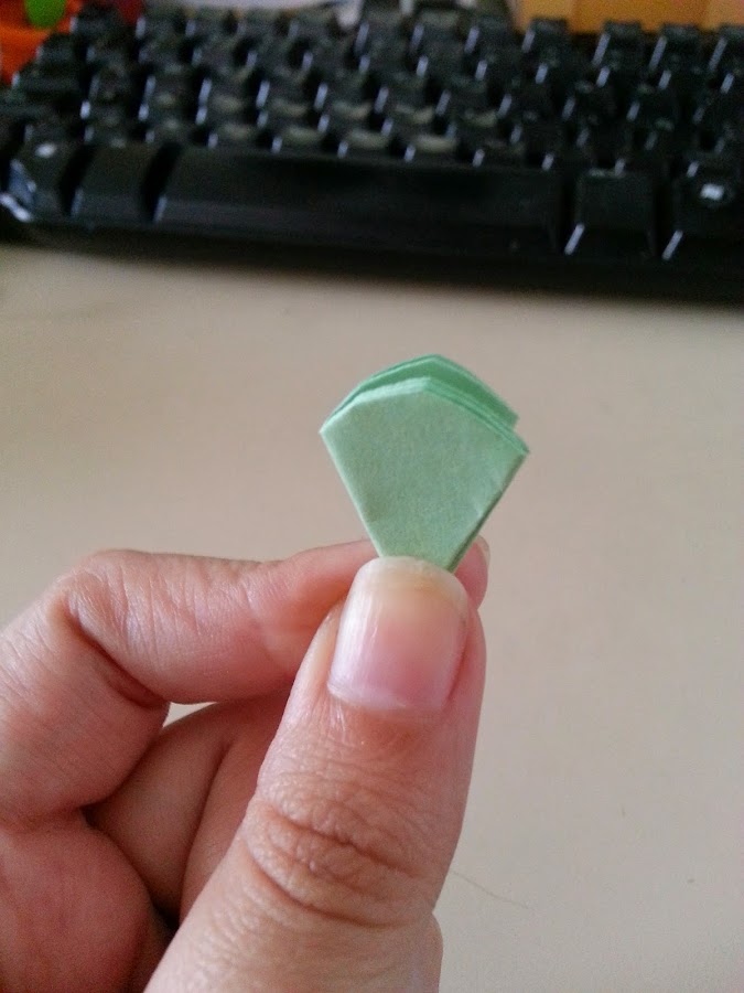 Tomen un cuadrado de papel verde (en mi caso era pequeñito de maso menos 7cm x 7cm