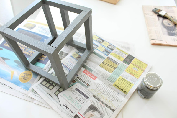 Así que encontré lo que necesitaba, trapillo gris (cómo no..) que ya usamos para las orejas de conejo de Pascua; y como armazón aproveché (en esta casa tooooodo de aprovecha) las barras de madera de una lámpara de un taller de Yonolotiraría que aunque en su momento me pareció estupenda, luego ese verde mint tan ideal no pegaba en ningún rincón de mi casa. Así que fuera la bombilla y ya tenemos armazón para mi futura caja de trapillo :-)