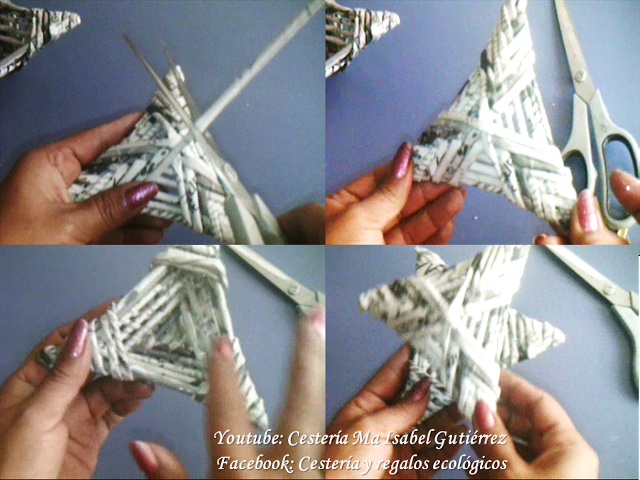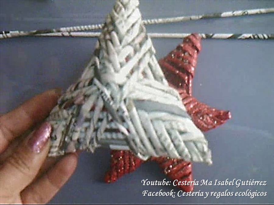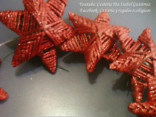 Cuando hayamos cubierto toda la superficie de adentro del triángulo, rematamos recortando la varilla y la escondemos entre los huecos... Hacemos dos triángulos del mismo tamaño y los vamos a pegar encontrados... y listo !! ya tenemos una estrella !! Pintamos y cuando aún esté fresca la pintura, dejamos caer diamantina y/o chaquira del mismo color de la pintura, dejamos secar y aplicamos una capa de barniz o acetato.