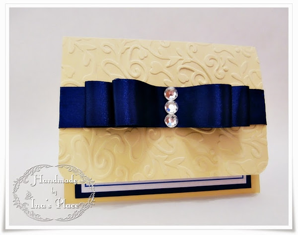 Esta combinación de colores, la textura y el toque de brillo le aportan a la invitación un aire de masculinidad(azul marino) y delicadeza femenina(vainilla y cristales) al diseño.