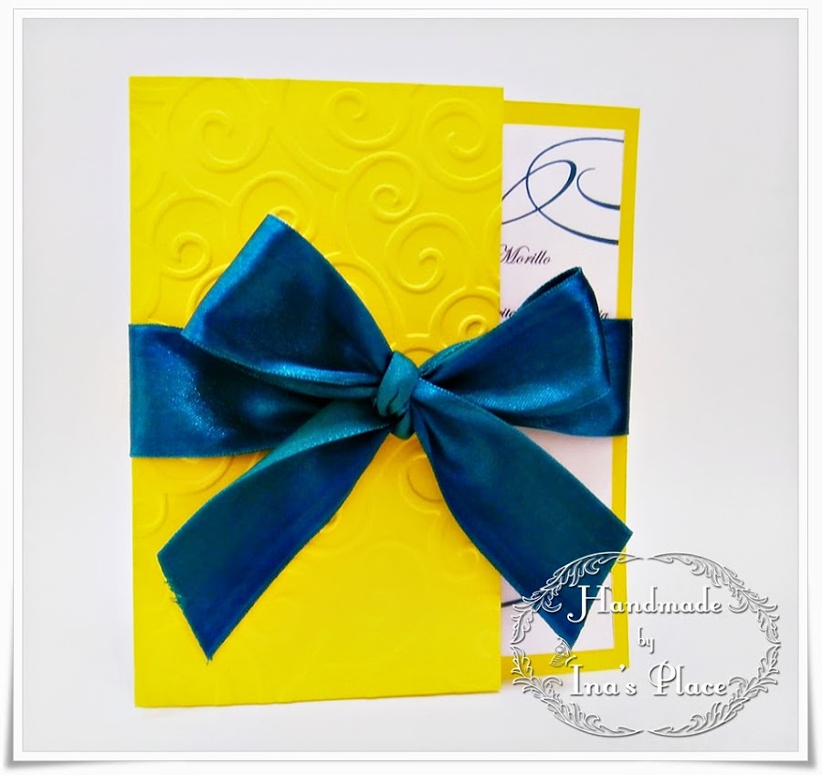 En este diseño la consigna fue realizar una invitación moderna y alegre.El color amarillo le aporta viveza y alegria y el lazo en verde turquesa inspira modenidad y sobriedad al diseño además de la textura que realza el mismo.