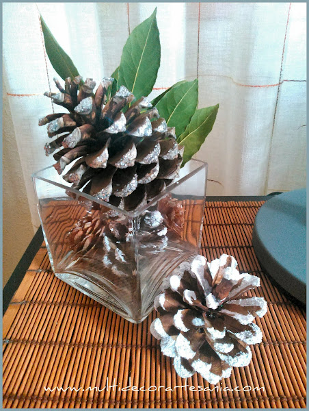 Un clásico total, decorar piñas recogidas en el campo, o como en mi caso, en el lugar de trabajo.