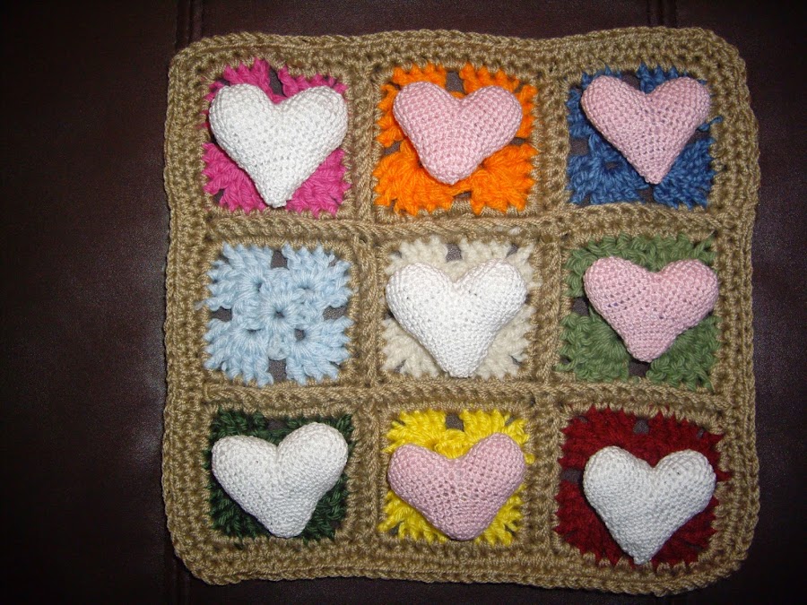 Espero que les haya gustado la idea, es muy facil de realizar, solo cuando tejan los corazones si no quieren desarmarlos varias veces como yo, traten de tejerlos cuando estan solas y sin interrupciones.