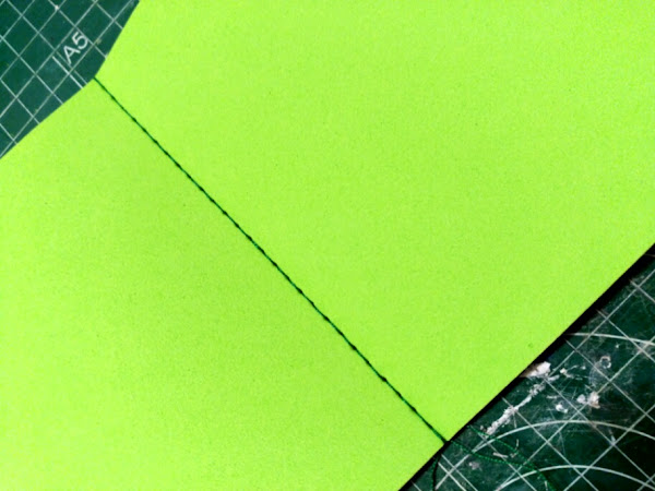 Cosemos por la mitad las dos piezas de goma eva del mismo tamaño.