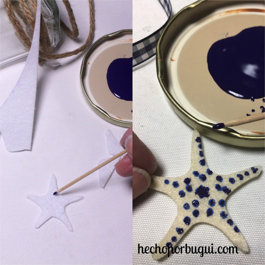* El segundo es mucho mas sencillo, he recortado un estrella de fieltro y le he pintado con un palillo unos puntos.