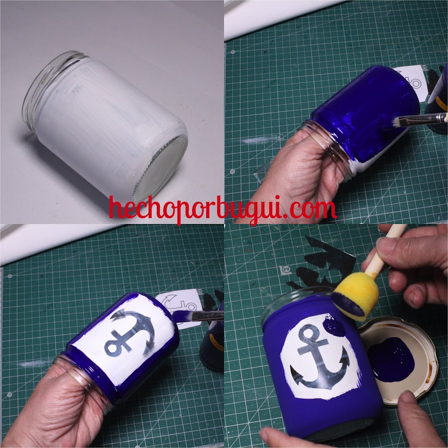 * El primer bote de cristal lo he pintado con Todo Terreno ya que pintar el cristal directamente es complicado.