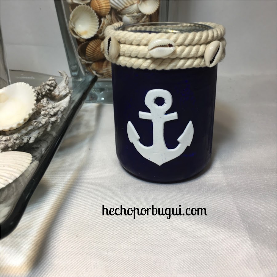 He elegido un azul intenso y he dejado en negativo una figura de una ancla.