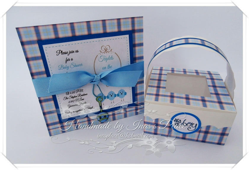 En la entrega de hoy presento dos hermosos kits para Baby Shower que eleaboré y consisten en las invitaciones más cajas/bolsas para dulces y/o souvenirs.Por lo general mi fuerte son las invitaciones y tarjetas que son un mundo bastante diversificado y las ideas son infinitas pero ya cuando el cliente si lo desea le trabajo otros productos.
