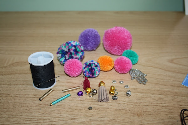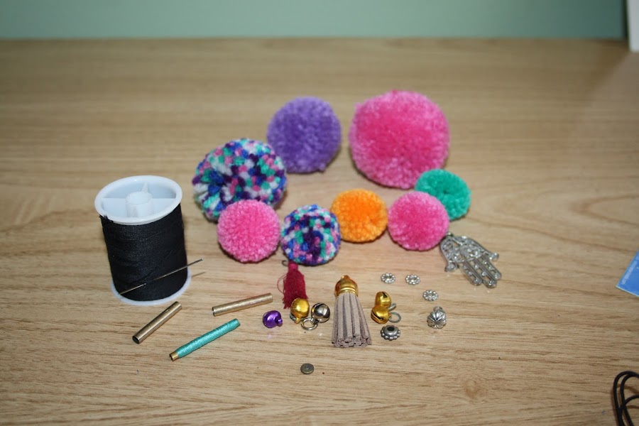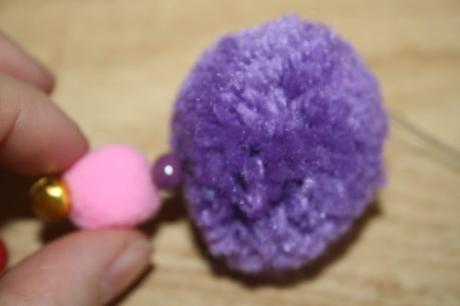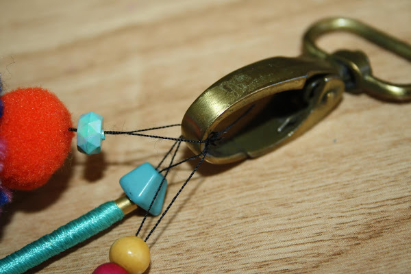 Después vamos metiendo pompones y abalorios como mejor nos parezca y así completaremos nuestro llavero boho.
