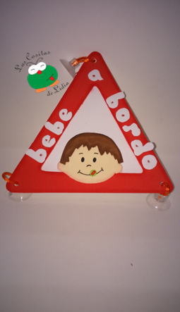 Que mejor forma de decorar tu coche que unos originales triángulos de "bebe a bordo" hechos de goma eva con unas ventosas para poder colgarlos sin problema. Personalizados con la imagen de niño o de niña!!