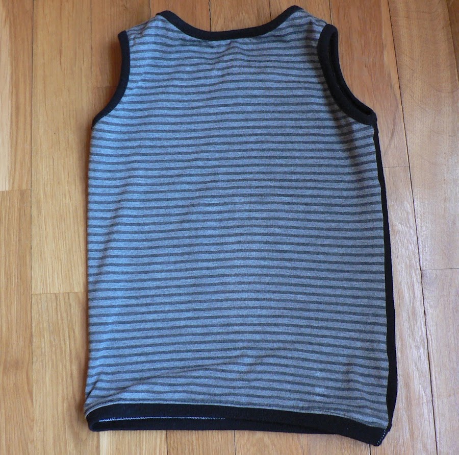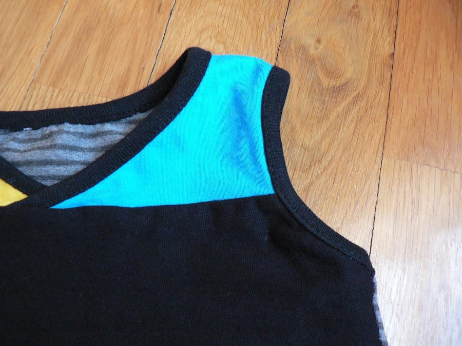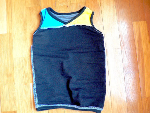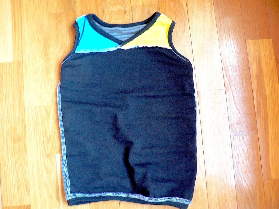 El único momento de complejidad fué coser los triángulos al cuerpo delantero. Los ribetes hacen que esa parte sea más dura, mucho más dura, por lo que a la remalladora le cuesta un poco hacer esa costura y no queda tan plana como las otras. Aún así ha quedado bastante bien.