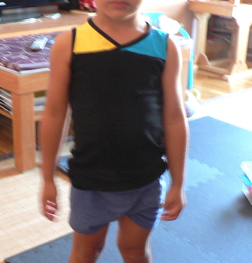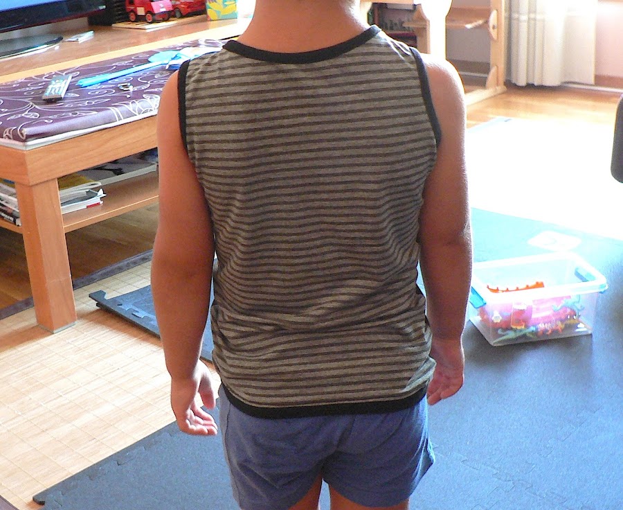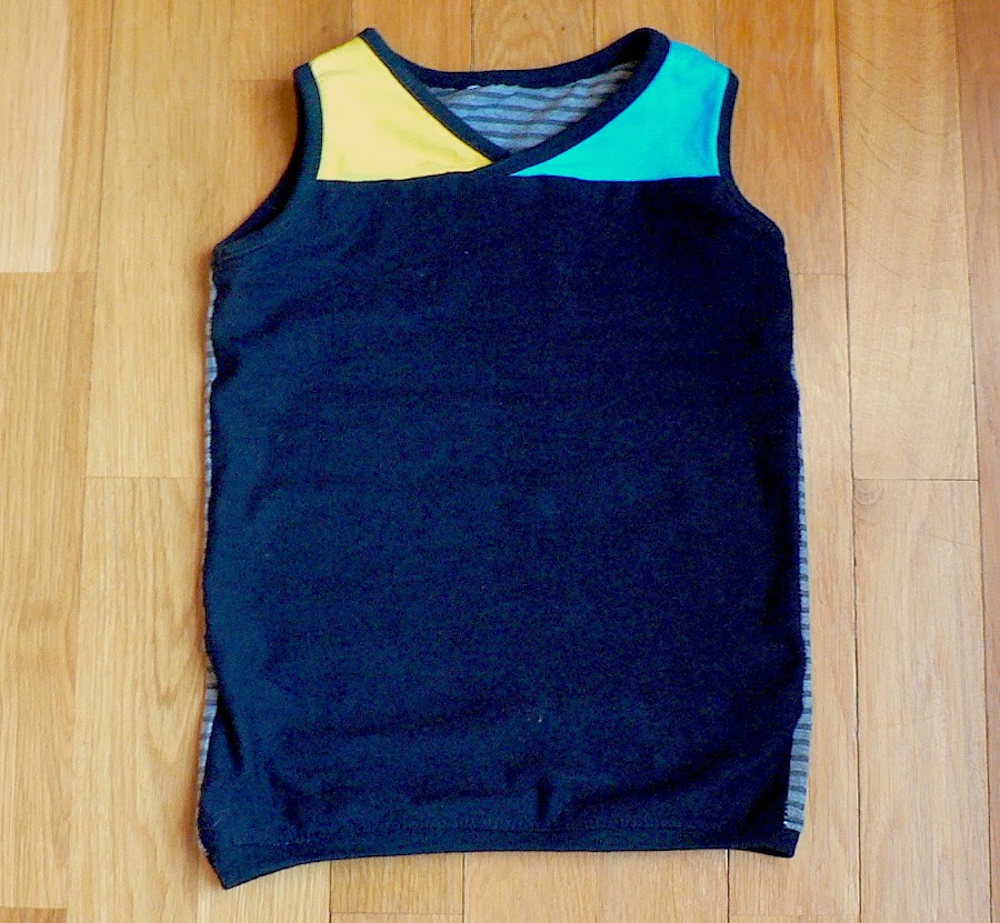 Hoy quiero enseñaros la camiseta que le he cosido al mayor. Se la hice hace un par de semanas para ir al cumple de uno de sus mejores amigos. Era un día especial que se merecía una prenda nueva. Se trata del modelo Tribal Triangles de la revista Ottobre Design 03/2015.