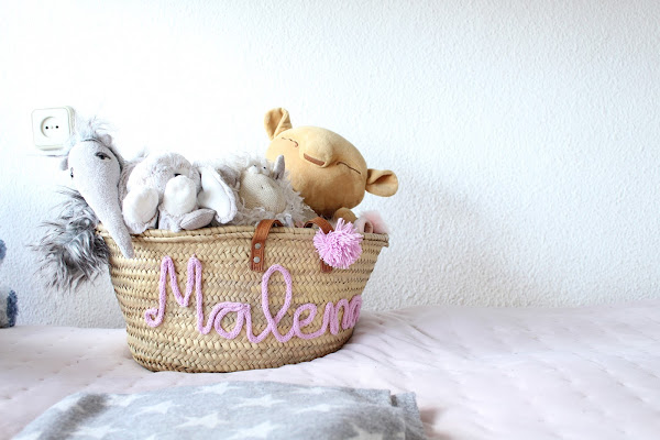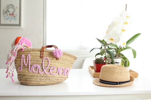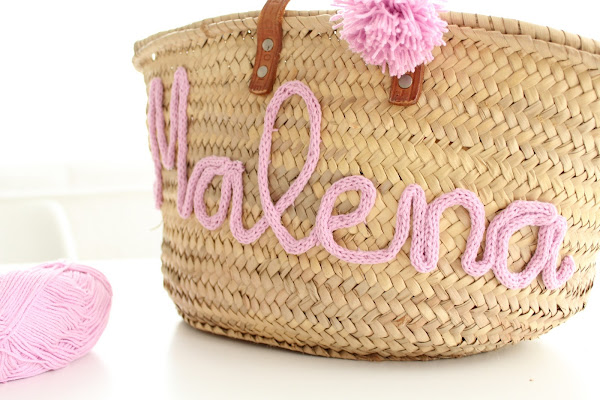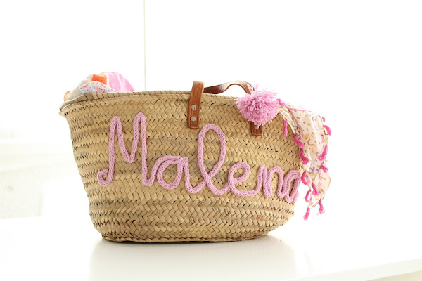 Segundo, que hay que pegarlo a la cesta de algún modo y aunque mi primera opción de perezosa absoluta fue el pegamento textil, algo me decía que igual no aguantaba nuestro ritmo de palas, toallas, raquetas varias, flotadores, ganapán, aletas y kilos de arena de cada verano, así que las cosí como pude. No es fácil y por dentro queda un poco churro, pero quería asegurarme de no ver el nombre despegado en medio de la playa :-)