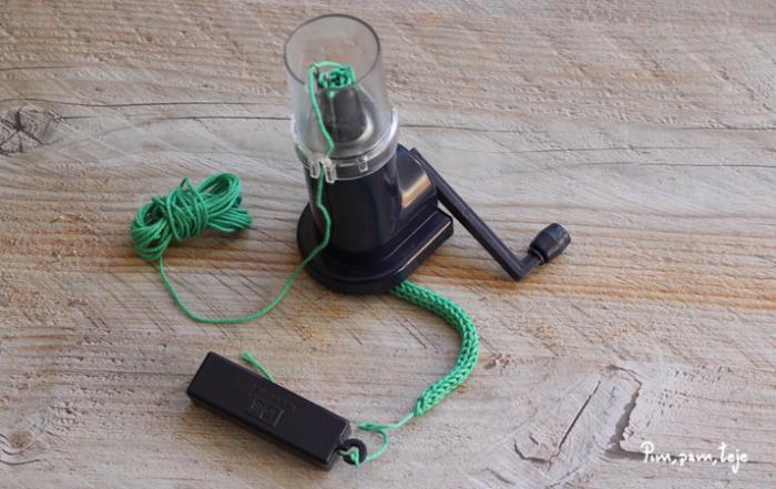 No tienes nada más que enhebrarlo, colocar la manivela y el peso, hacer girar la manivela y en un momento tienes el cordón terminado.