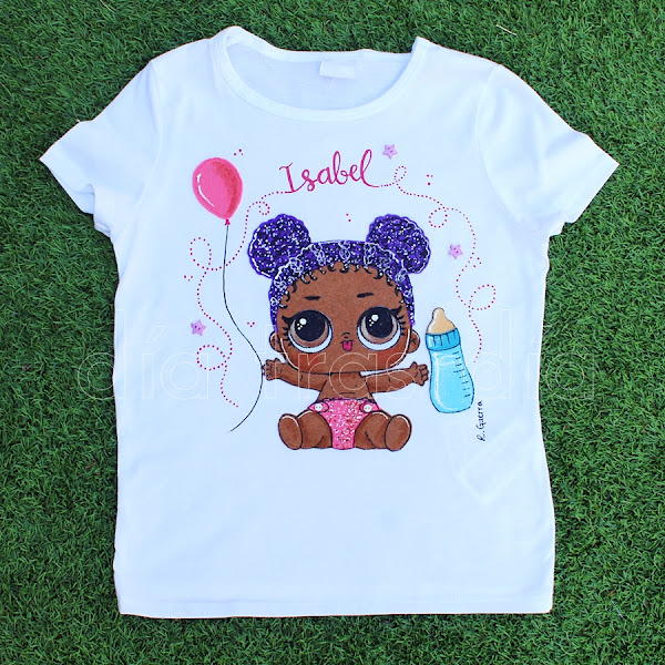 Y además de las camisetas para Alicia e Isabel, Elena me pidió una camiseta para Nuria, una amiga de sus peques, para la que eligió otro modelo diferente. En esta ocasión el modelo elegido fue una LOL animadora.
