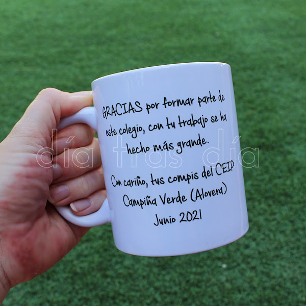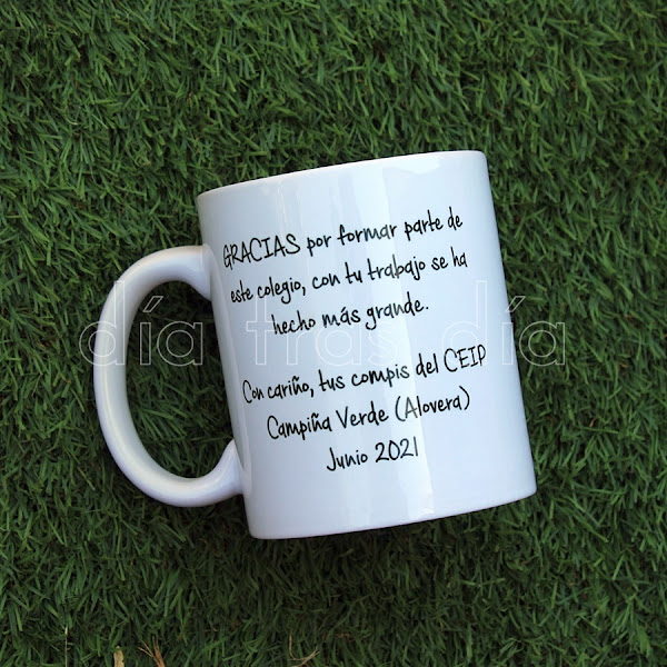 Si en la entrada anterior os enseñé la bolsa de playa que preparé para la seño Flori, en esta voy a aprovechar para enseñaros algo nuevo que he hecho este curso como regalo para profes: tazas personalizadascon mensaje.
