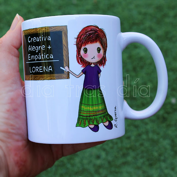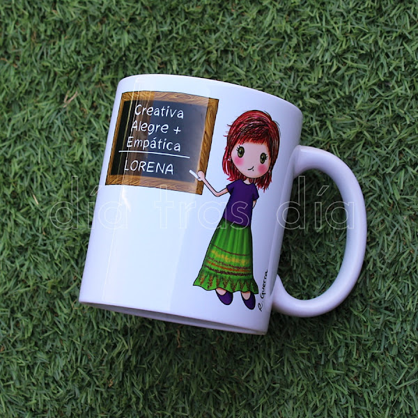 Es cierto que no es la primera vez que hago tazas con mis diseños ya que, aquí por ejemplo, os enseñé alguna de ellas, pero sí que es la primera vez que os animáis a pedirme una como regalo de fin de curso.