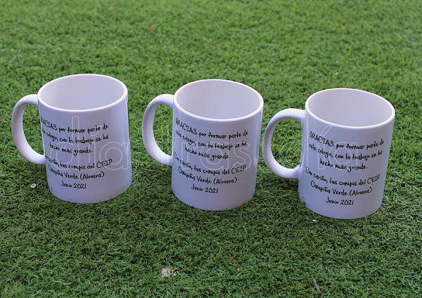 Maitese puso en contacto conmigo para encargarme tres tazas para tres maestros de su cole. Por el diseño que me pidió para las tazas, yo intuyo que se trata de tres compañeros de Maite que han estado este curso en su cole y que no seguirán el próximo año allí, por lo que sus compañeros han querido tener un detalle con ellos al finalizar el curso.