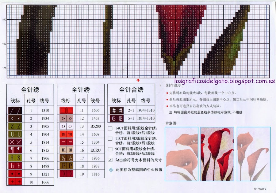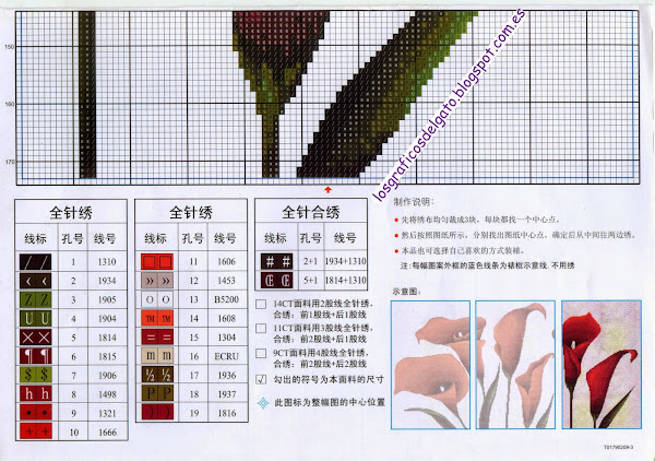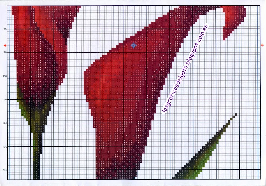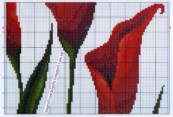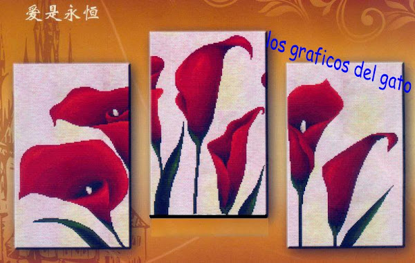 Precioso gráfico de un triptico de calas rojas...
